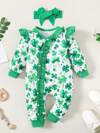 嬰兒女孩心形印花荷葉邊連身衣裝配頭箍