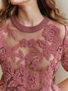 Anewsta 女式秋季花卉网眼圆领短袖针织上衣春季女装
