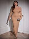 Slaydiva 大碼紐扣細節下擺開叉緊身毛衣洋裝