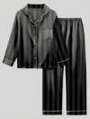 SHEIN 少女缎面开衫衬衫和短裤睡衣套装