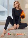 女士秋冬时尚保暖内衣套装,长袖圆领打底上衣和裤子,打底套装,户外服,冬季瑜伽服,户外滑雪冬季保暖女装