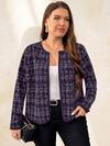 SHEIN Clasi 大码优雅仿粗花呢印花撞色滚边短外套,秋冬款