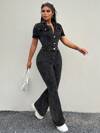 SHEIN Slayr 纯色粗肩带口袋休闲宽松牛仔连体裤
