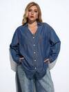 SHEIN LUNE 大码牛仔休闲度假衬衫,时尚适合夏季