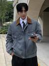 男士长袖羊羔绒领泰迪熊内衬牛仔夹克,适合秋冬季穿着
