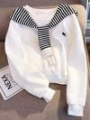 Resyla 加大码条纹印花蝴蝶结刺绣休闲套头卫衣