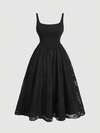 SHEIN 加大纯色灯笼袖系带连衣裙长款女装
