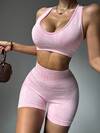 Dewbera 女士几何印花工字背心和短裤运动套装运动胸罩和短裤套装黄油般柔软健身套装小巧健身套装女士健身套装(含骑行短裤)