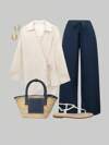 SHEIN LUNE 大码休闲纯色系腰衬衫和裤子 2 件套