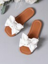 女童時尚蝴蝶結裝飾平底拖鞋,適用於夏季海灘度假