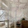 1 件美式/法式/歐式刺繡雙層蕾絲花卉珍珠裝飾窗簾透明
