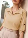 Mulvari 女士纯色翻领卷袖优雅办公衬衫,春夏款
