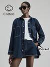 Maija 女深蓝色牛仔套装长袖牛仔外套和卷边下摆裙25秋冬新款韩版休闲装办公室女装ins风秋季外套两件套牛仔套装女