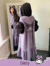 DAZY HELLO KITTY AND FRIENDS | SHEIN 少女刺绣卡通字母图案撞色连帽羊毛睡袍家居服,秋冬