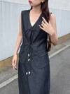 DAZY 2件套女士休闲水洗宽松牛仔背心和阔腿裤套装