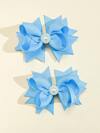 5入組女童金點絨織繡帶長尾髮夾,帶蝴蝶結,適用於馬尾髮型