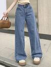 SHEIN PETITE 休闲洗水直筒牛仔裤