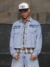 ROMWE MEN Street Life 男士秋季标语天使印花拉链牛仔夹克