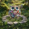梦幻波西米亚风格亚克力猫头鹰花园桩,7.87 英寸 X 5.5 英寸 - 防风雨户外盆栽和花园装饰,异想天开的庭院艺术