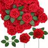 10/30/50/100 件人造花逼真象牙泡沫假玫瑰带茎适用于 DIY 婚礼花束白色新娘送礼会中心装饰布置派对桌装饰情人节和母亲节(不含纸盒)