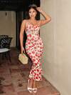 Aloruh 女士优雅浅黄色挂脖系带迷你连衣裙