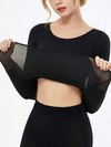 女士无缝蕾丝保暖内衣,薄款长袖上衣,纯色保暖舒适打底衫,圆领修身高弹轻薄透气休闲打底衫,适合秋冬季穿着