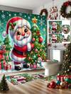1/4 件圣诞树、圣诞老人印花浴室套装,包含防水浴帘、防滑垫、马桶座套、浴室垫和 12 个塑料挂钩、浴室配件、家居装饰
