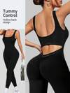 Slayform 女性純色露背瑜伽連身衣