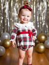 SHEIN 女婴优雅格子彼得潘领连体衣,秋季格子婴儿连体衣红色格子婴儿套装