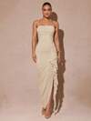 SHEIN MOD 不对称肩带蝴蝶结长裙,红色,适合度假、休闲、婚礼季节