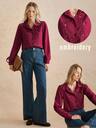 Écloséra 法式复古亚麻混纺纹理衣领和袖口撞色花卉装饰女士长袖衬衫,春秋季