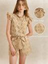 Écloséra 女士优雅镂空刺绣飞袖荷叶边女衬衫