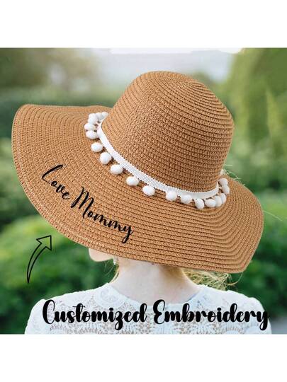 [定制] 1 件定制刺绣宽边太阳帽,夏季旅行穿防晒 - 彩色 - 查看 1