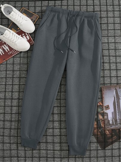 Manfinity Dauomo 男士腰部抽繩加絨內裏衛褲 - 深灰色 - 查看 1