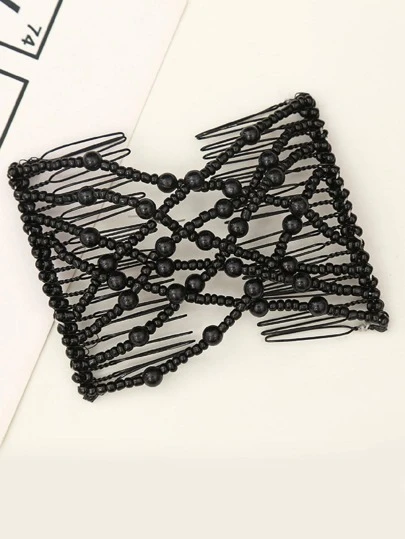 串珠装饰发梳发夹休闲发髻发簪发髻器发髻发饰发型针,发饰,头部饰品,女士发饰 - 黑色 - 查看 1