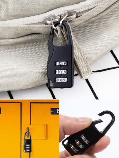 迷你拨号数字密码组合挂锁旅行安全锁行李锁挂锁健身房密码锁防盗非常适合行李箱背包门柜商务旅行度假 - 黑色 - 查看 4