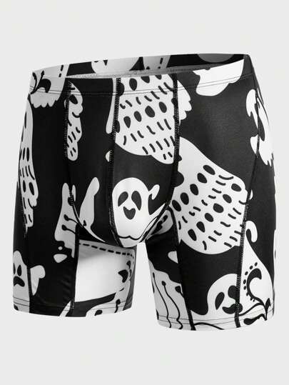 男士萬聖節鬼印花腰部抽繩男式泳褲 - 黑與白 - 查看 1