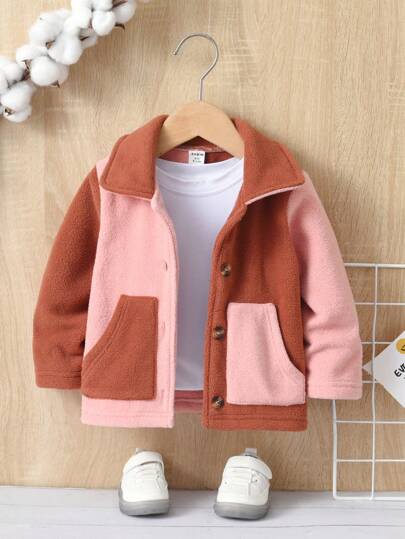 女孩嬰兒雙色前紐扣外套不帶T恤 - 彩色 - 查看 1