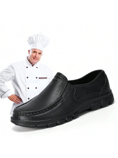 男士防滑耐磨工作鞋,防油防水厨师鞋,厨房鞋 - 黑色 - 查看 1