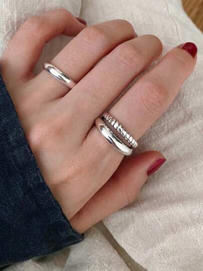 BALMORA 1入簡單且多用途的復古s925純銀橢圓開口銀戒指,適合女性日常佩戴 - 銀色 - 查看 1