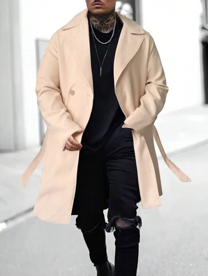 Manfinity Homme 男士毛織品夾克帶西裝領和皮帶設計 - 米色 - 查看 1
