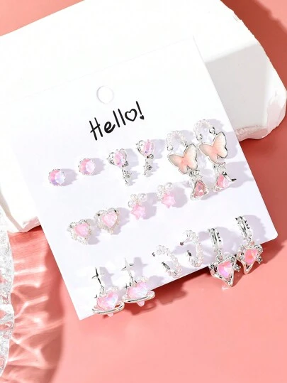 18 对粉色主题蝴蝶、星星和心形耳钉套装,适合女士、生日礼物情人节、妈妈、母亲、母亲节、礼物 - 查看 1
