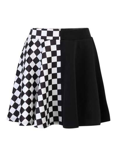 SHEIN EZwear 女款大尺碼格紋半身裙 - 黑與白 - 查看 1