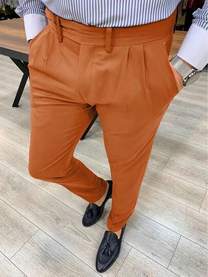 Manfinity Homme 男士褶皺斜口口袋錐形褲 - 棕色 - 查看 1