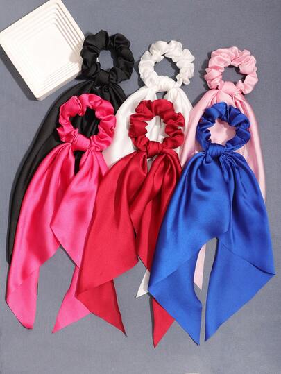 1个缎面蝴蝶结发圈,韩版纯色发圈,带飘带,可扎马尾,发圈,橡皮筋,发绳,弹力发带,发饰,头饰,松紧带 - 彩色 - 查看 6