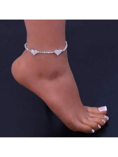 1入豪華鉤爪鑲嵌心形設計踝鏈/閃亮焊接鑲嵌水晶鏈踝鏈女士約會珠寶 - 愛心 - 查看 10