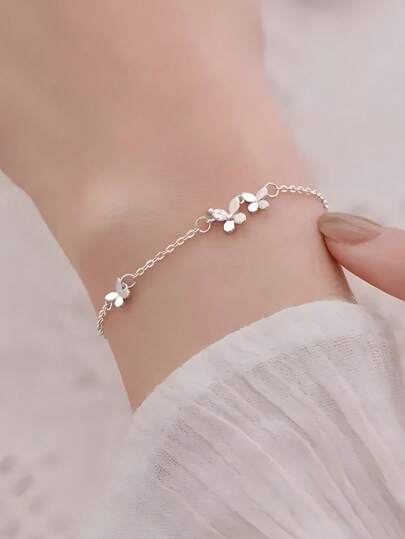 1枚時尚輕柔的s925純銀&鋯石蝴蝶手鍊,優雅且適合日常佩戴,適合情人節、母親節、新年珠寶禮物 - 銀色 - 查看 1