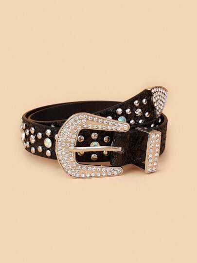 新款兒童彩虹鑲鑽腰帶,腰部設計裝飾腰帶,適用於牛仔與連衣裙 - 黑色 - 查看 1