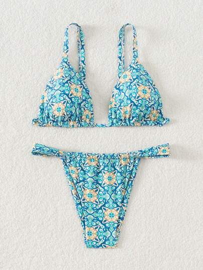 SHEIN Swim 女性夏日海灘花卉印花無肩帶時尚比基尼套裝,隨機印花 - 彩色 - 查看 1