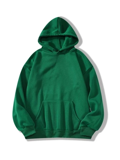 INAWLY 纯色袋鼠口袋保暖内衬连帽衫、长袖上衣 - 綠色 - 查看 1